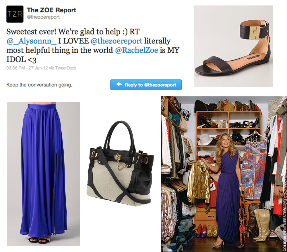 Today I tweeted to The Zoe Report not expecting a response and right away I received the reply that is above. Even though this tweet was most likely not from the AMAZING Rachel herself, it’s still nice to know that her team took the time to write back to lil’ ‘ol me. I have deeply admired Rachel Zoe since her show (The Rachel Zoe Project) debuted on Bravo in 2008. When the show began I was instantly hooked and knew at that moment that I wanted to follow in Rachel’s footsteps. Since then my dreams haven’t wavered and I am taking a similar path that Rachel herself took. Some GREAT advice I received from Damsel in Dior as well as the ladies at E! is that, “there is no wrong or right path to take, all that matters is that you got there.” I believe this bit of advice pertains not only to me, but to many of you other fashionistas trying to break into the bizz.