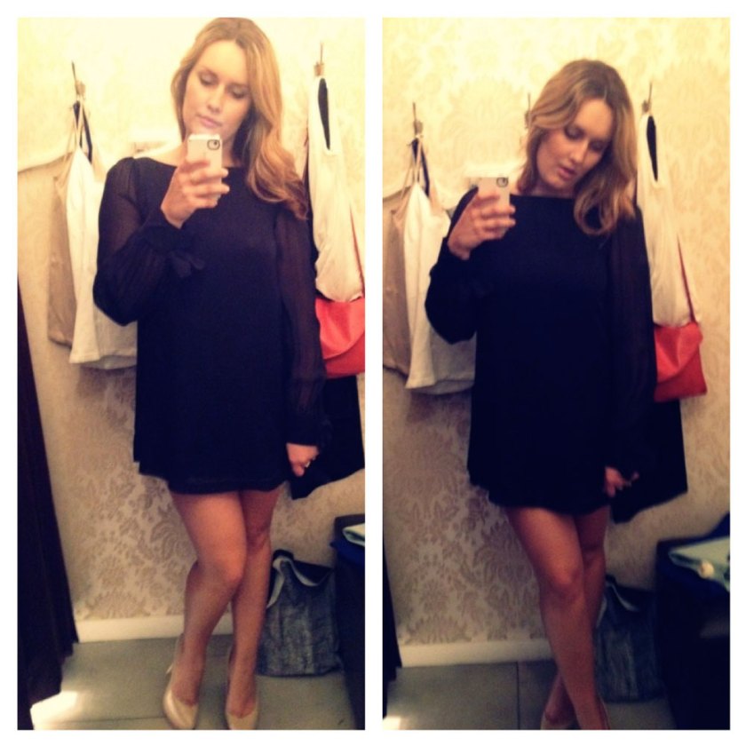 Yesterday I stumbled upon the Rochelle Dress from Guess By Marciano in store. I decided i had to try it on and here is the outcome. The dress has a wonderful chiffon overlay and comes in the three colors. The sleeves have adorable bow details on the cuffs. I immediately fell in love, however I am 5’8″ and often have a problem with hemlines being too short and in this case that was a major problem. I was planning on wearing it to an event but I wouldn’t even be able to sit down or bend over and God forbid if a gust of wind caught the hem of the dress. Although I love this simple, chic 1960s inspired style, I would suggest it to someone who is several inches shorter than I am. I had to opt out of getting it 😦