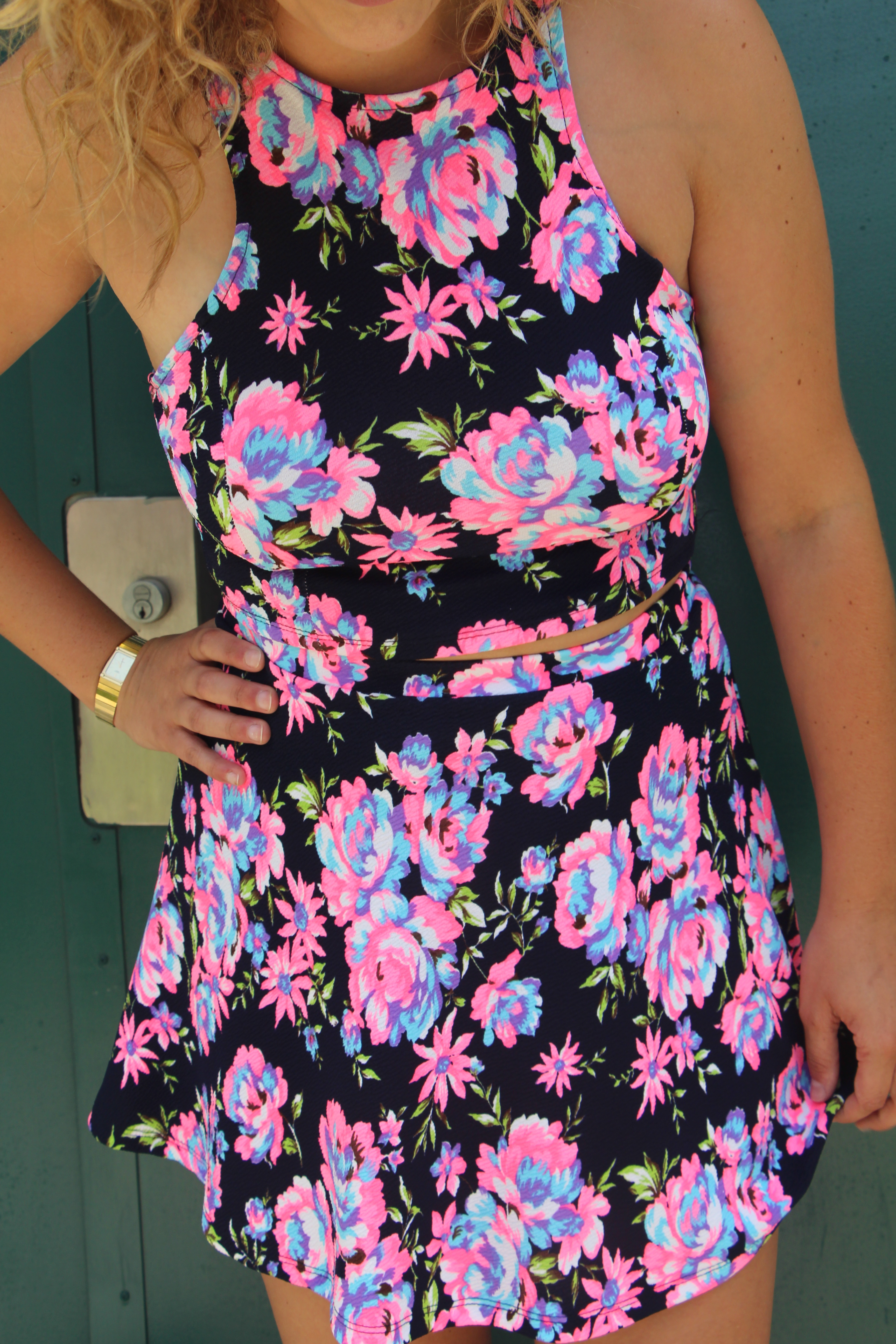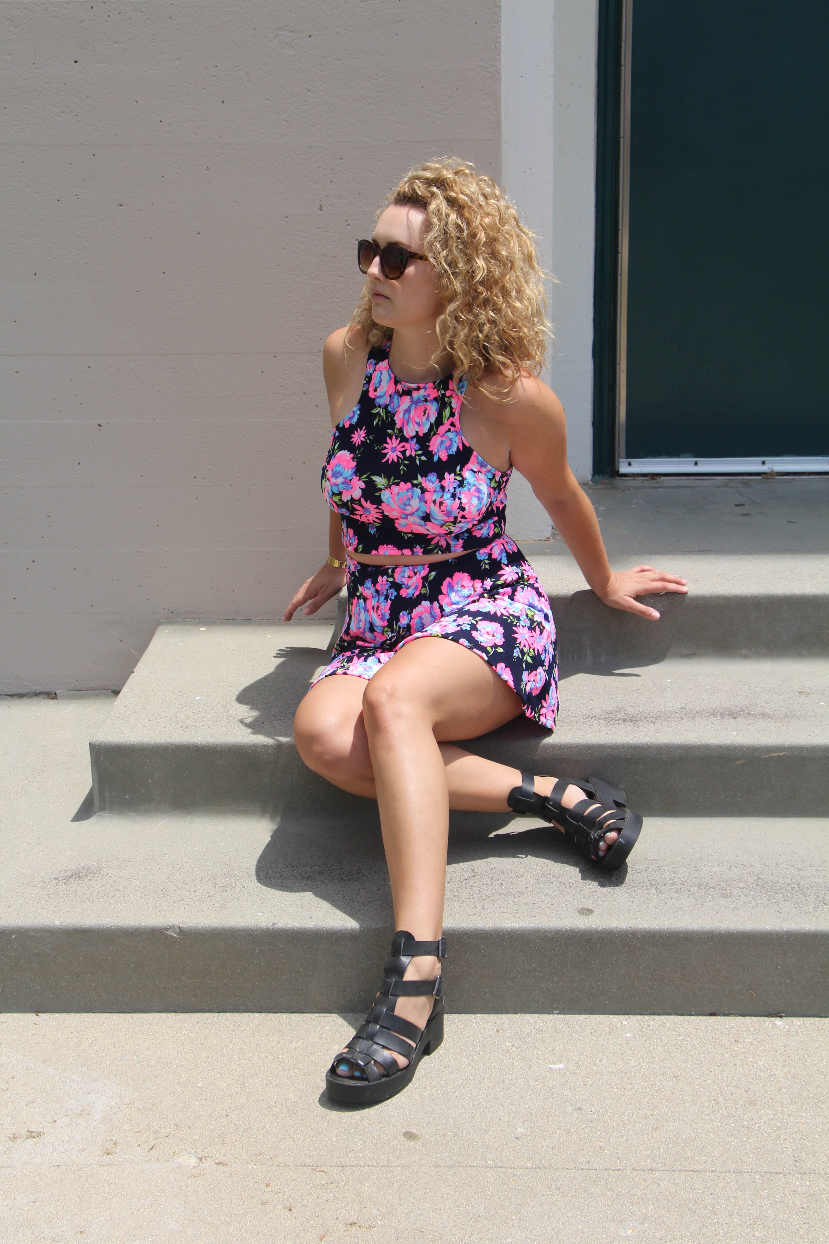 What I’m wearing: Matching floral top & skirt (I bought a few months ago) from Buffalo Exchange // Gold vintage watch (one of many stylish accessories inherited from my grandma) // Steve Madden sandals //  Forever 21 sunnies